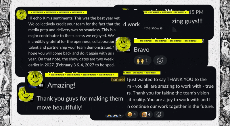 The end result was a show where both agency and brand said it was the best show they’d ever had complete with the greatest content they had ever included. We’re confident this was only possible because we were all able to watch the show weeks and months in advance from the comfort of a web browser.
