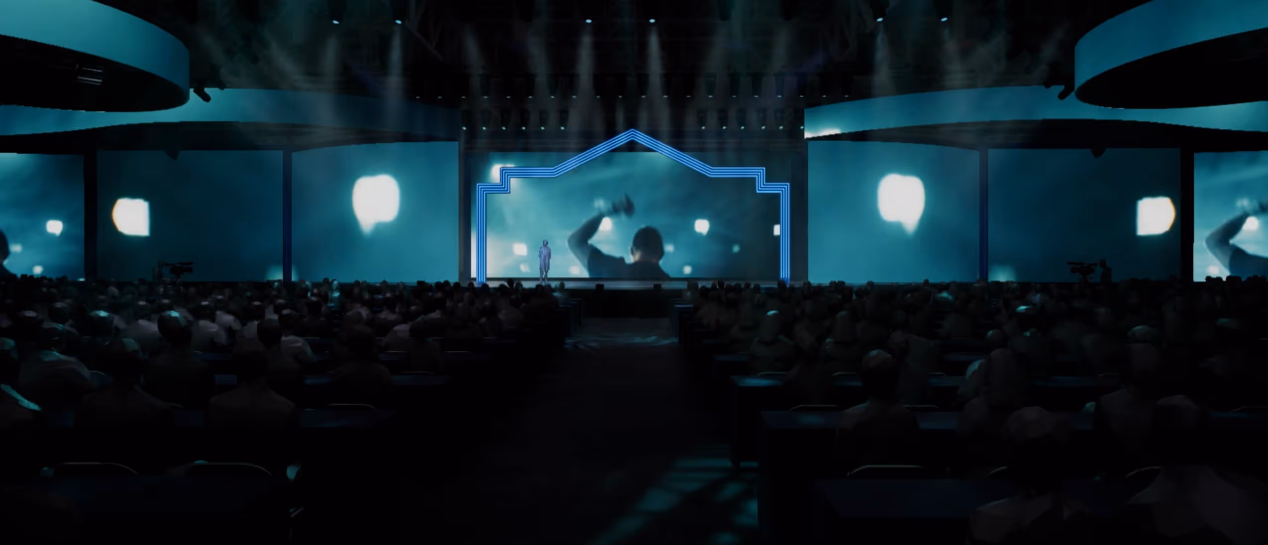 Besides the complicated set of ring and ribbon screens as well as the ultra wide main screens, the show itself had many different segments that had their own unique look. Having access to a full walkthrough in our virtual environment was necessary to ensure that the show was cohesive. We were able to view when and where to use reset visuals that connected back to the VizID and better understand which portions of the show needed to stay a bit further from the VizID and sit within their own style and look.